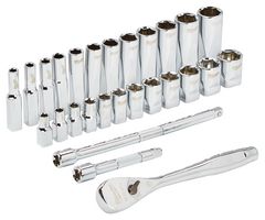 28 piezas de matraca, extensión, universal, pozo y juego de dados estándar