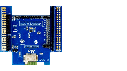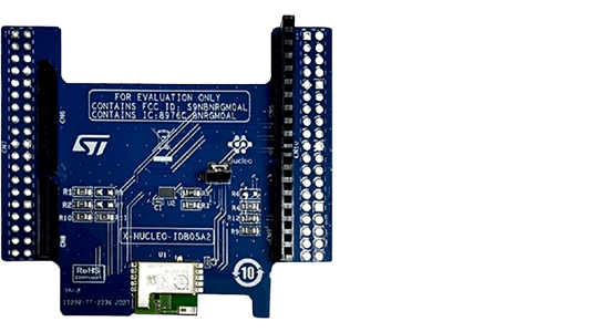 - Placa de expansión STM32 Nucleo basada en el módulo BlueNRG-M0 compatible con Bluetooth v4.2 y certificado por la FCC y el IC (ID de FCC: S9NBNRGM0AL; IC: 8976C-BNRGM0AL)