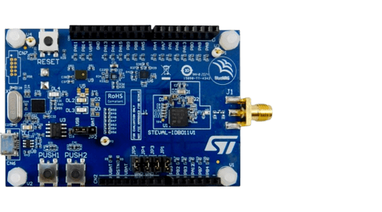 - Placa Bluetooth®SMART basada en el sistema en chip Bluetooth® Low Energy BlueNRG-2